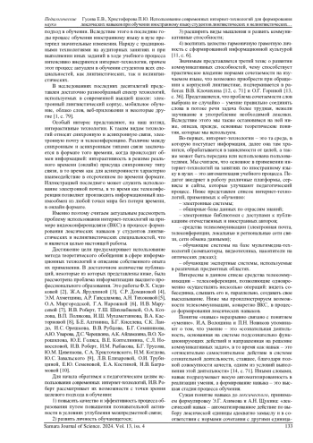 1. Еремин Ю.В., Рубцова А.В., Крылова Е.А., Смольская Н.Б. Технологии применения электронных образовательных ресурсов при обучении иноязычной лексике в многопрофильном вузе // Современное педагогическое образование. 2021. № 2. С. 78-84. EDN: FJNRFN