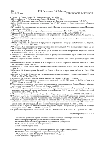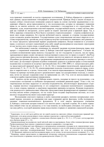 ОСПЕННИКОВ Ю. В., ЧЕБАНЕНКО С. Б. В ПОИСКАХ ДРЕВНЕРУССКОГО ПРАВА: РАЗМЫШЛЕНИЯ НАД ИССЛЕДОВАНИЕМ ДАНИЭЛЯ КАЙЗЕРА (РЕЦ. НА: ДАНИЕЛЬ Х. КАЙЗЕР. РОСТ ПРАВА В СРЕДНЕВЕКОВОЙ РУСИ / ПЕР. С АНГЛ А. Ю. ДВОРНИЧЕНКО. - МОСКВА: ИЗДАТЕЛЬСТВО «ВЕСЬ МИР», 2024. - 360 С.) // ВЕСТНИК УДМУРТСКОГО УНИВЕРСИТЕТА. СЕРИЯ: ИСТОРИЯ И ФИЛОЛОГИЯ. 2025. Т. 35 № 1