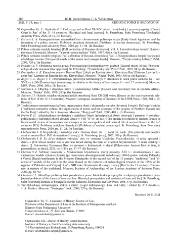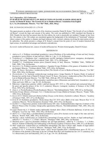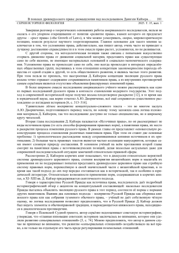 Статья: В ПОИСКАХ ДРЕВНЕРУССКОГО ПРАВА: РАЗМЫШЛЕНИЯ НАД ИССЛЕДОВАНИЕМ ДАНИЭЛЯ КАЙЗЕРА (РЕЦ. НА: ДАНИЕЛЬ Х. КАЙЗЕР. РОСТ ПРАВА В СРЕДНЕВЕКОВОЙ РУСИ / ПЕР. С АНГЛ А. Ю. ДВОРНИЧЕНКО. - МОСКВА: ИЗДАТЕЛЬСТВО «ВЕСЬ МИР», 2024. - 360 С.) (2025)