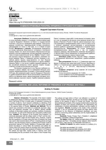 Результаты. По итогам проведенного исследования можно сделать вывод о том, что судебноправовые реформы обуславливались влиянием Просвещенного абсолютизма и были направлены на преодоление судебного произвола и реализацию гуманистических идей.