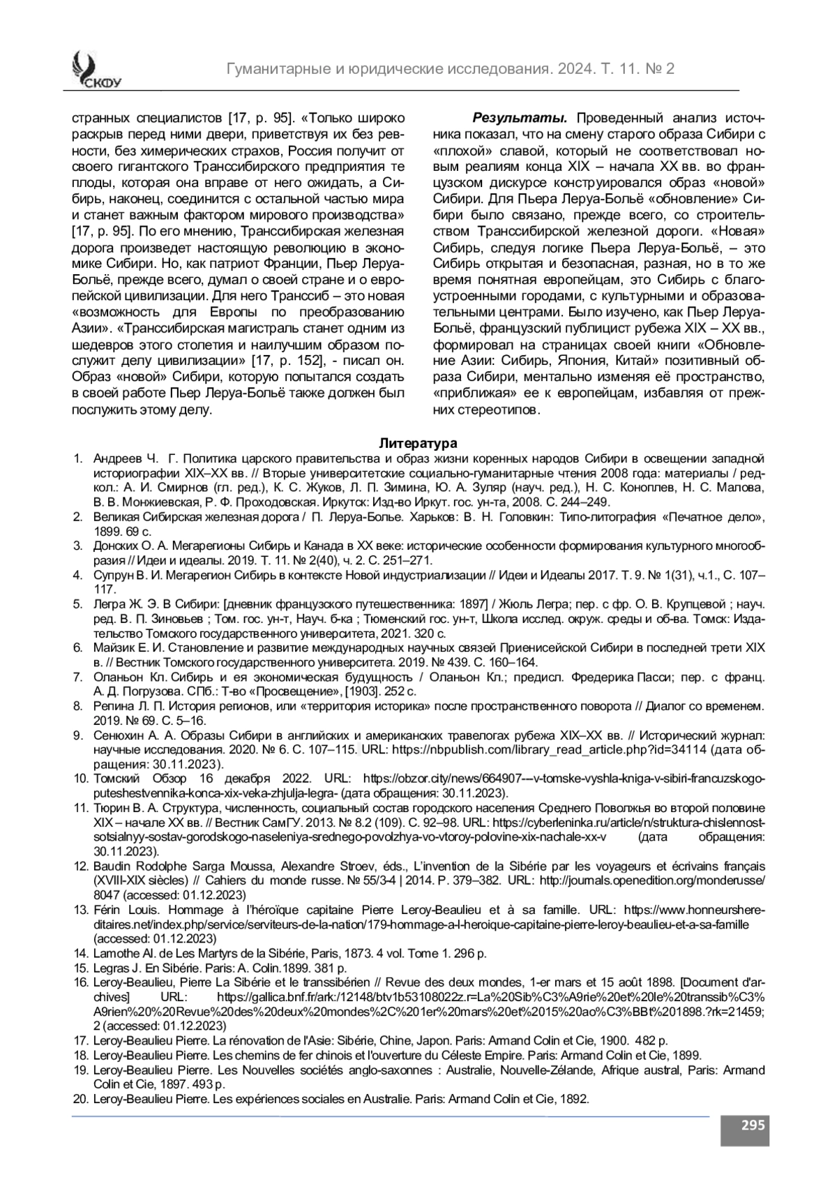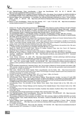 16. Leroy-Beaulieu, Pierre La Sibérie et le transsibérien // Revue des deux mondes, 1-er mars et 15 août 1898. [Document d’archives] URL: https://gallica.bnf.fr/ark:/12148/btv1b53108022z.r=La Sibérie et le transsibérien Revue des deux mondes, 1er mars et 15 août 1898.?rk=21459; 2 (accessed: 01.12.2023)