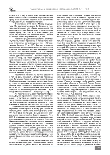 Анализ. Грузинский диктат достаточно быстро привел к росту антигрузинских настроений среди жителей Южной Осетии и последовавшим затем выступлениям против грузинских властей. Тогда как последние занесли осетин в статус предателей и организовали беспрецедентную по жестокости и размаху карательную экспедицию 1920 г. В статье подробно отслеживается ход операции, бои с осетинскими повстанцами, перечисляются репрессивные действия грузинских вооруженных сил на территории Южной Осетии, в особенности, отрядов Народной гвардии во главе с печально знаменитым руководителем Валико Джугели, который не препятствовал даже показательным убийствам местных осетин. Поэтому данную экспедицию можно однозначно оценить как этническую чистку, в ходе которой практически все население Южной Осетии вынуждено было бежать через горы на территорию Северной Осетии.