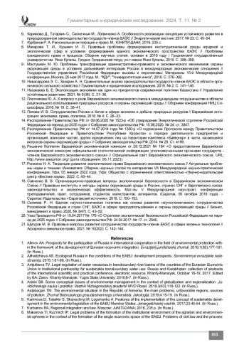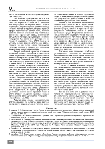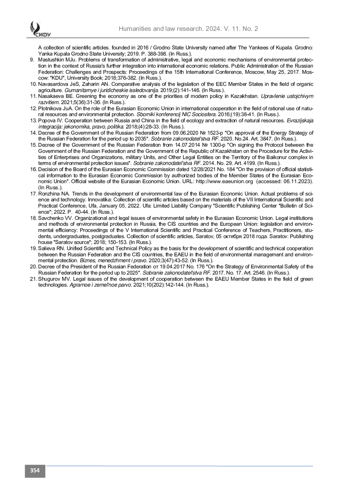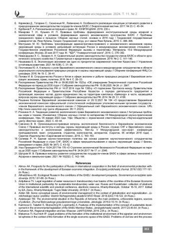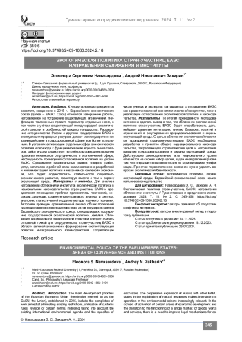НАВАСАРДОВА Э. С., ЗАХАРИН А. Н. ЭКОЛОГИЧЕСКАЯ ПОЛИТИКА СТРАН-УЧАСТНИЦ ЕАЭС: НАПРАВЛЕНИЯ СБЛИЖЕНИЯ И ИНСТИТУТЫ // ГУМАНИТАРНЫЕ И ЮРИДИЧЕСКИЕ ИССЛЕДОВАНИЯ. 2024. ТОМ 11, № 2