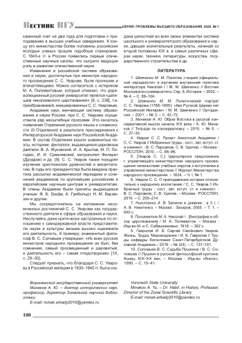 2. Шевченко М. М. Политический портрет С. С. Уварова (1786-1855): “Без Русской Церкви нет Российской Империи” / М. М. Шевченко // Ортодоксия. - 2021. - № 3. - С. 42-72. EDN: JRWRQT