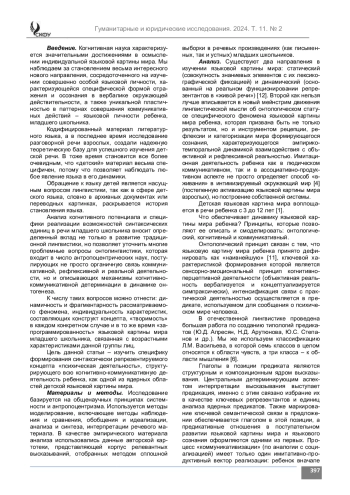 Введение. В русле антропоцентрического подхода стремление создать модель языковой картина мира индивида становится возможной, благодаря концептам как базовым структурам накопления знаний о мире. Такого результата можно добиться путем исследования языковой картины мира ребенка, что будет способствовать более глубокому пониманию структуры языковой картины мира взрослого, а не наоборот, как казалось прежде.