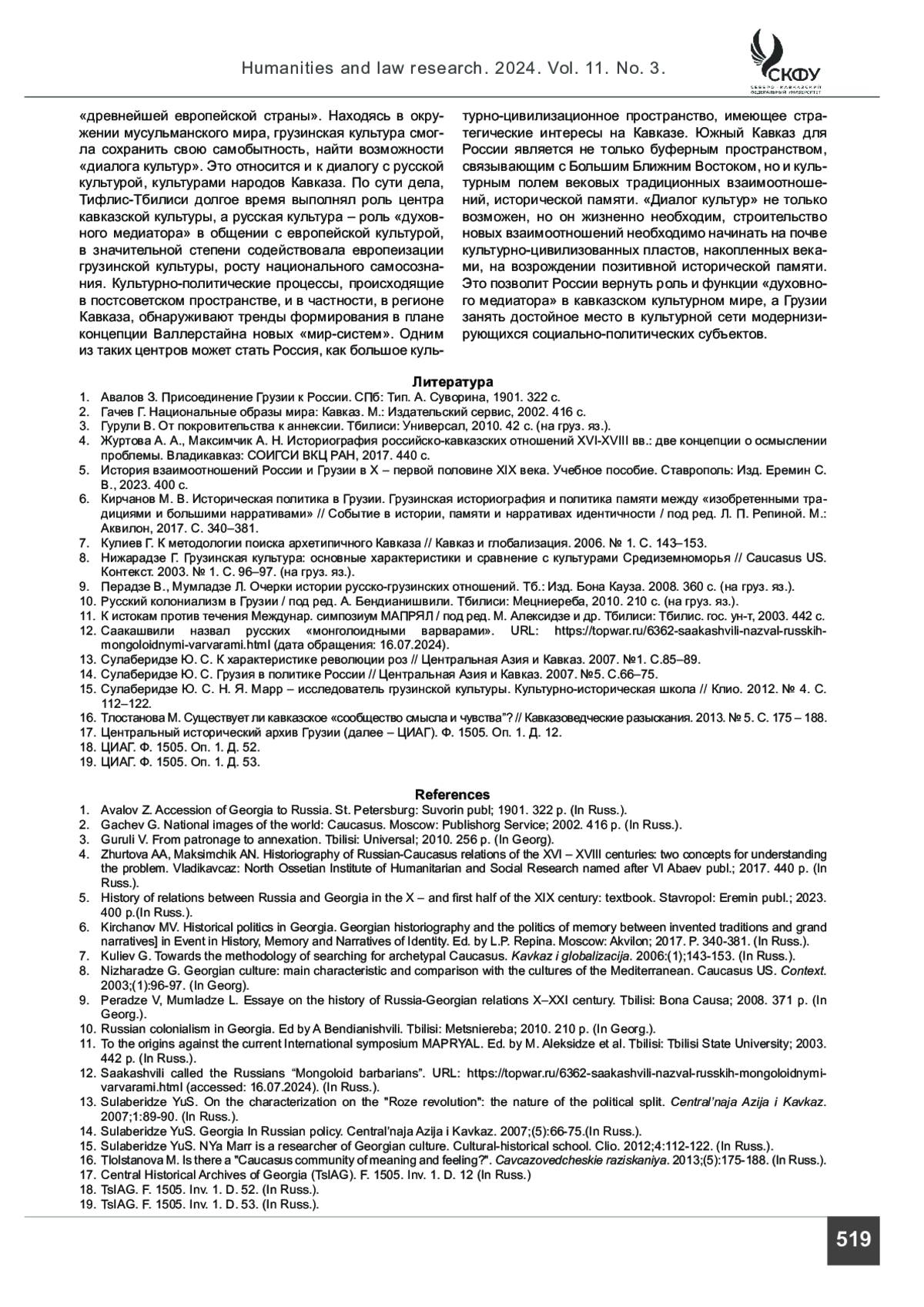 14. Сулаберидзе Ю. С. Грузия в политике России // Центральная Азия и Кавказ. 2007. №5. С.66-75.