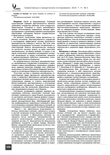 Статья: Публичные неналоговые платежи в западноевропейской концепции: теоретический аспект (2024)