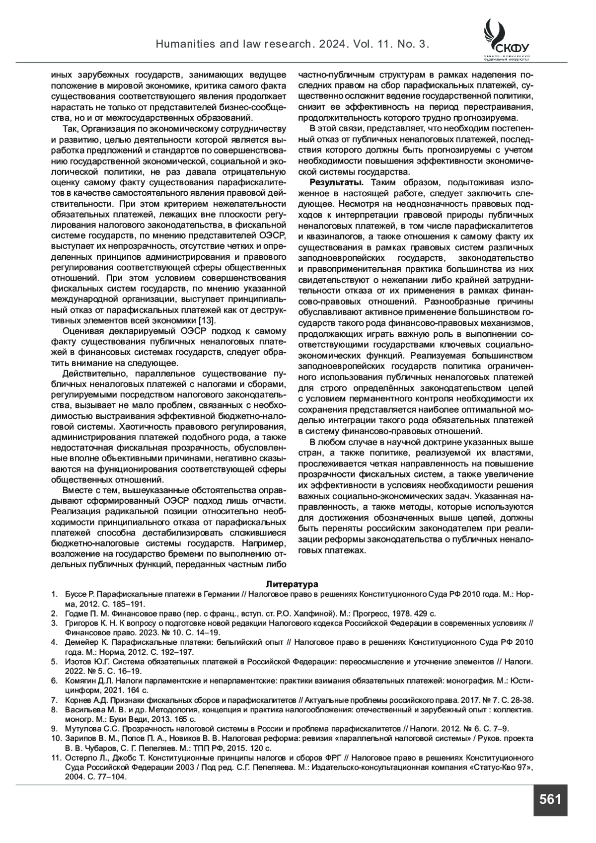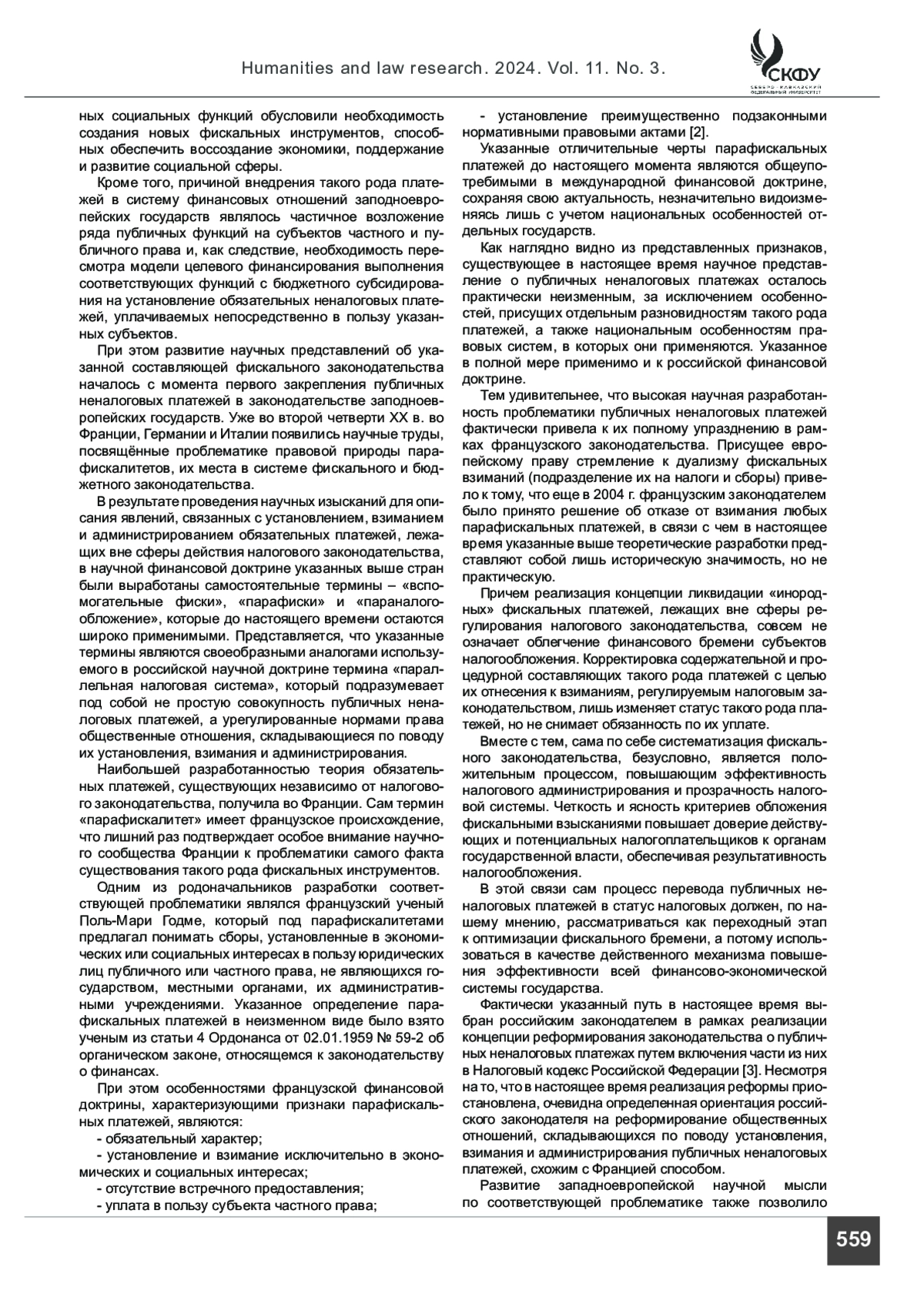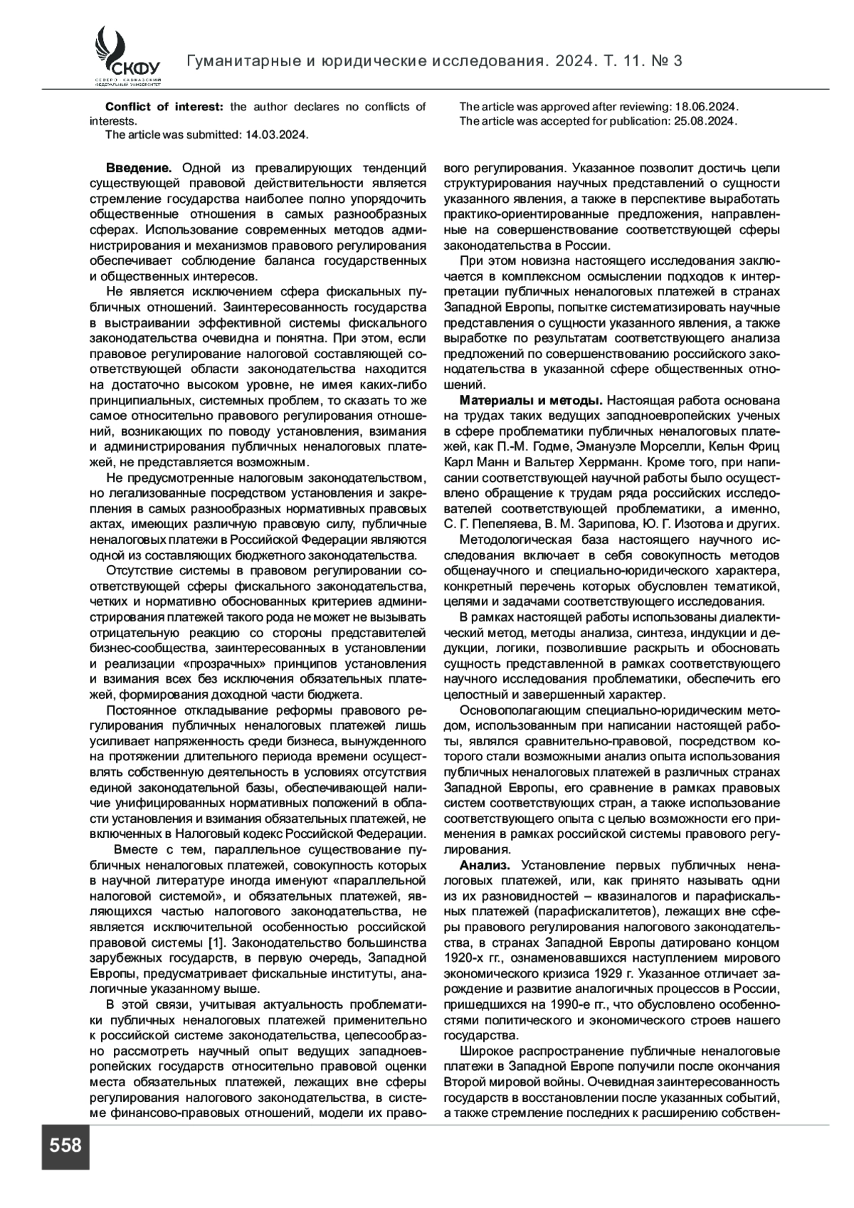 КУРКИН И. В. ПУБЛИЧНЫЕ НЕНАЛОГОВЫЕ ПЛАТЕЖИ В ЗАПАДНОЕВРОПЕЙСКОЙ КОНЦЕПЦИИ: ТЕОРЕТИЧЕСКИЙ АСПЕКТ // ГУМАНИТАРНЫЕ И ЮРИДИЧЕСКИЕ ИССЛЕДОВАНИЯ. 2024. ТОМ 11, № 3