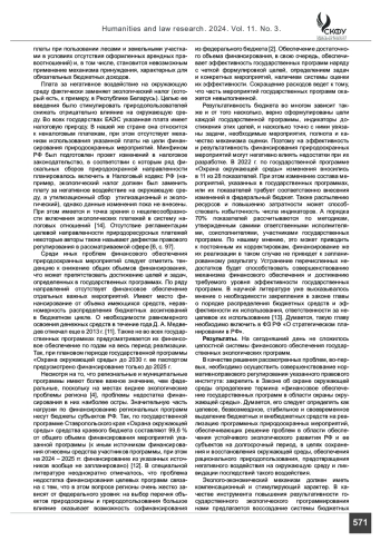 Анализ. Проведенные в начале XXI века реформы бюджетного, налогового и экологического законодательства фактически разрушили имевшийся эколого-экономический механизм природопользования, что повлекло за собой значительные проблемы в области финансового обеспечения программных мероприятий. В настоящее время государственные программы являются важным инструментом финансового обеспечения охраны окружающей среды и рассматриваются в качестве правовой формы и юридического основания финансирования экологически значимых мероприятий, однако не могут показать в полной мере своей эффективности. Основным источником финансирования природоохранных мероприятий в настоящее время выступают бюджетные средства. Финансовые средства из внебюджетных источников привлекаются недостаточно, что может вызывать проблемы недостатка финансирования, особенно на местах. Среди иных проблем финансового обеспечения природоохранных мероприятий следует отметить тенденцию к снижению общих объемов финансирования, отсутствие финансового обеспечения отдельных важных мероприятий, финансирование от объема имеющихся средств, неравномерность их распределения в бюджетном цикле.