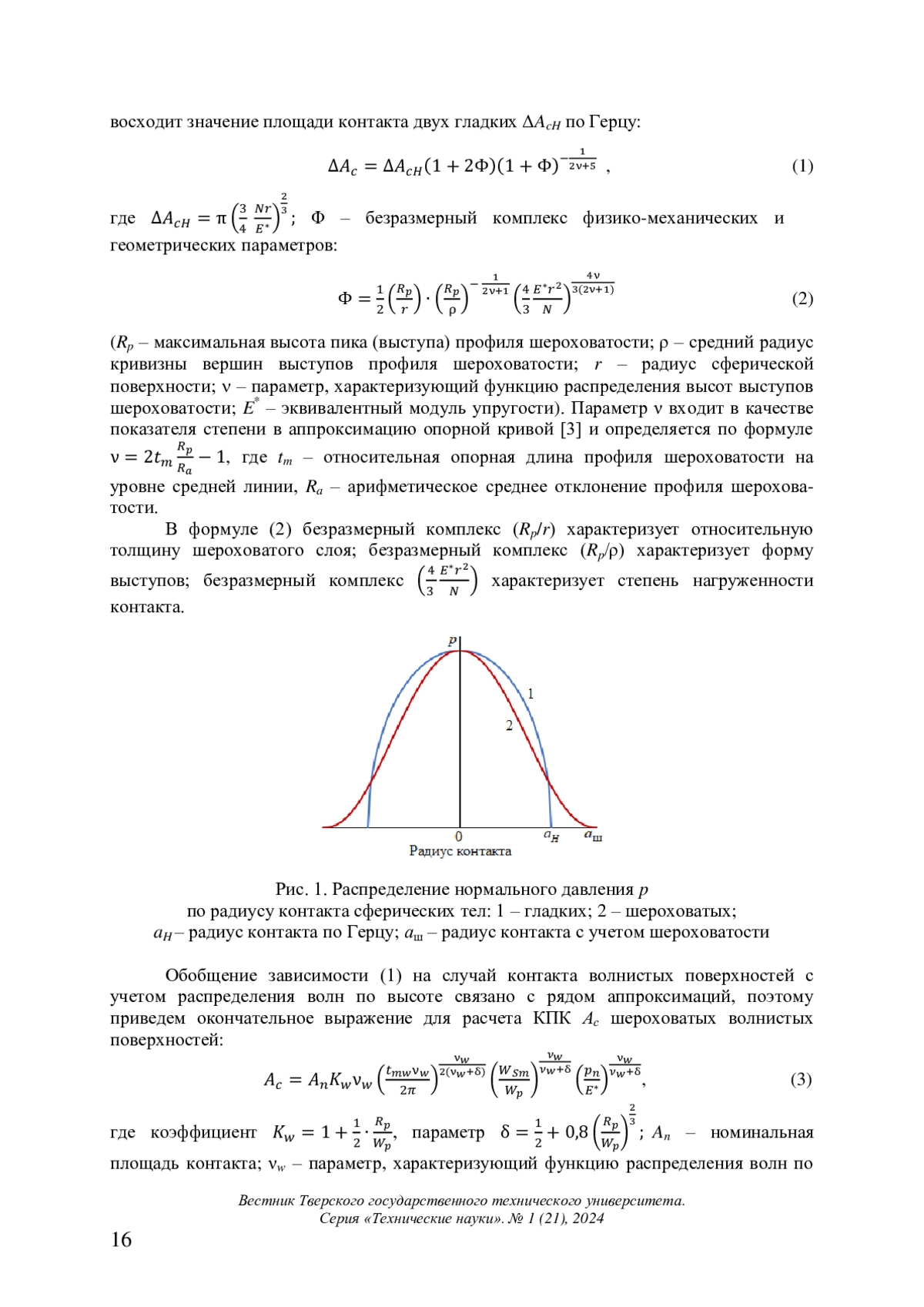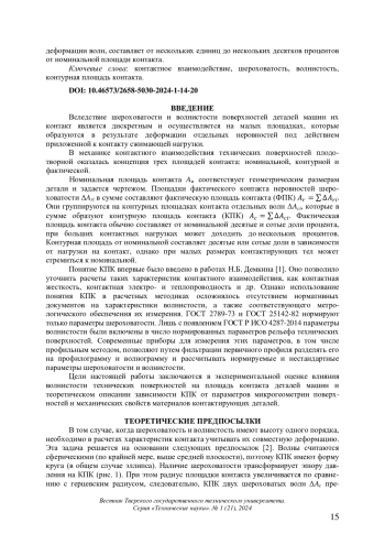 Статья: ВЛИЯНИЕ ВОЛНИСТОСТИ ПОВЕРХНОСТЕЙ НА ХАРАКТЕРИСТИКИ КОНТАКТНОГО ВЗАИМОДЕЙСТВИЯ ДЕТАЛЕЙ МАШИН (2024)