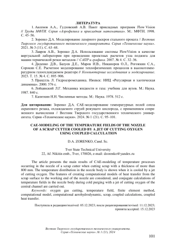 3. Лавров А.В., Зоренко Д.А. Использование системы FlowVision в качестве виртуальной лаборатории при проведении проектных расчетов узла поджига для машин термической резки металлов // САПР и графика. 2007. № 4. С. 32-36. EDN: YHKAPX