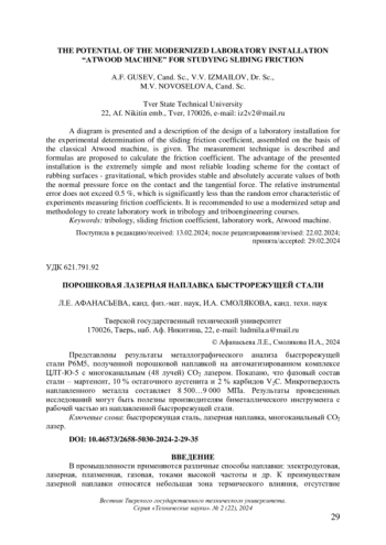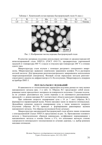 АФАНАСЬЕВА Л. Е., СМОЛЯКОВА И. А. ПОРОШКОВАЯ ЛАЗЕРНАЯ НАПЛАВКА БЫСТРОРЕЖУЩЕЙ СТАЛИ // ВЕСТНИК ТВЕРСКОГО ГОСУДАРСТВЕННОГО ТЕХНИЧЕСКОГО УНИВЕРСИТЕТА. СЕРИЯ: ТЕХНИЧЕСКИЕ НАУКИ. 2024. № 2 (22)