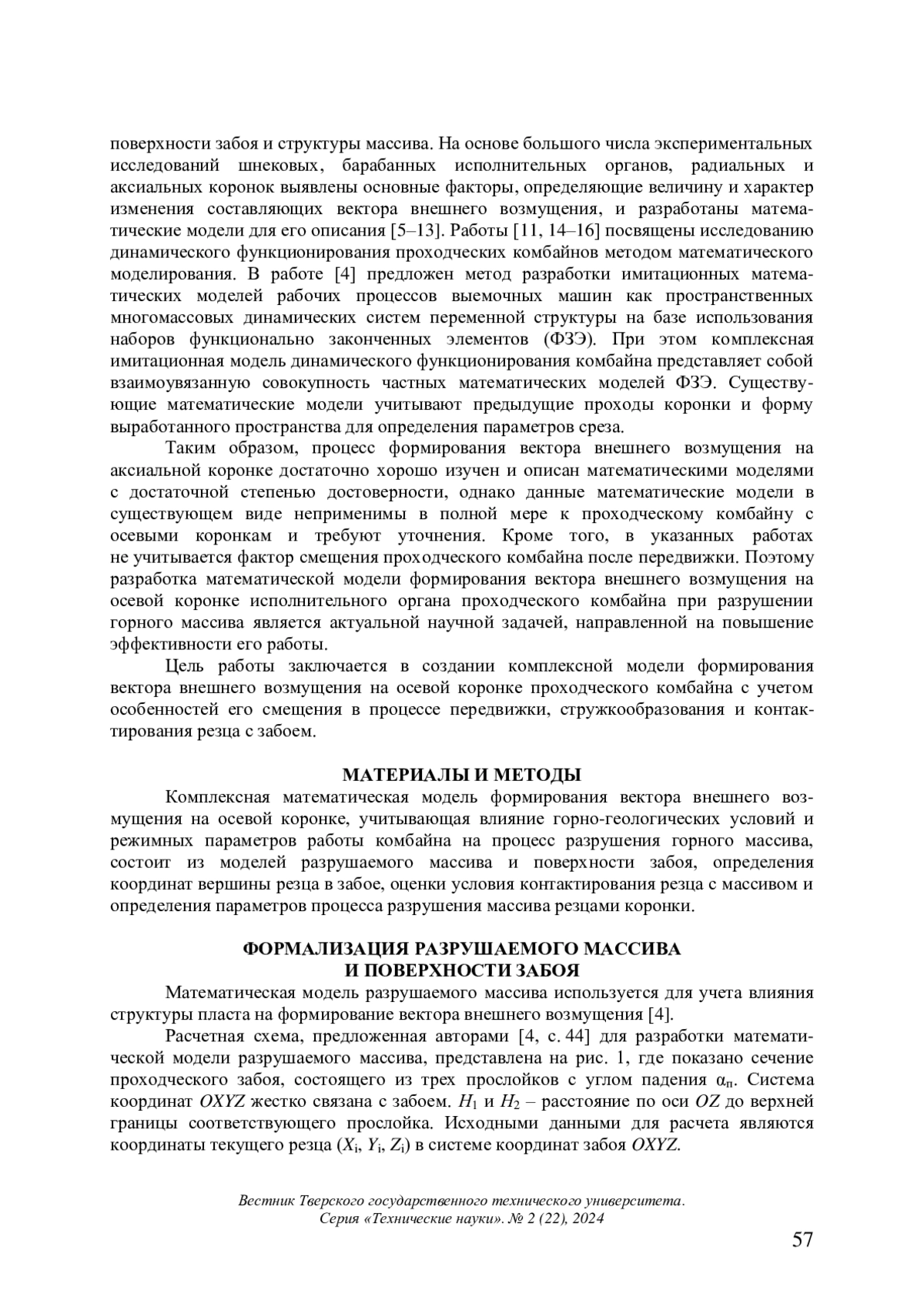 Статья: МАТЕМАТИЧЕСКАЯ МОДЕЛЬ ФОРМИРОВАНИЯ ВЕКТОРА ВНЕШНЕГО ВОЗМУЩЕНИЯ НА ОСЕВОЙ КОРОНКЕ ИСПОЛНИТЕЛЬНОГО ОРГАНА ПРОХОДЧЕСКОГО КОМБАЙНА (2024)