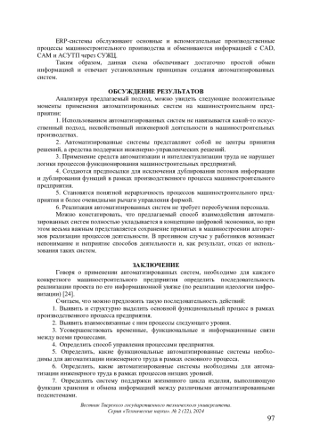 Статья: ВЗАИМОСВЯЗЬ АВТОМАТИЗИРОВАННЫХ СИСТЕМ УПРАВЛЕНИЯ И ПРОЕКТИРОВАНИЯ В МАШИНОСТРОИТЕЛЬНОЙ ОРГАНИЗАЦИОННО-ТЕХНОЛОГИЧЕСКОЙ СИСТЕМЕ (2024)