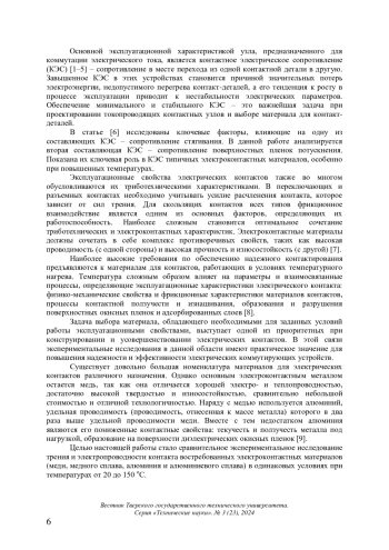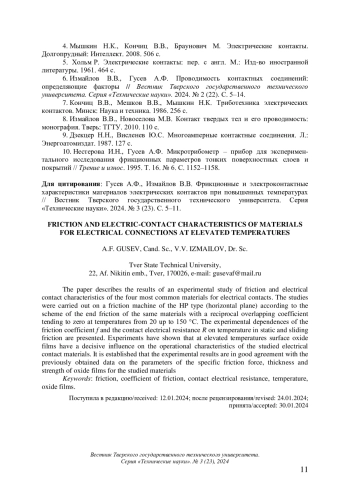 Статья: ФРИКЦИОННЫЕ И ЭЛЕКТРОКОНТАКТНЫЕ ХАРАКТЕРИСТИКИ МАТЕРИАЛОВ ЭЛЕКТРИЧЕСКИХ КОНТАКТОВ ПРИ ПОВЫШЕННЫХ ТЕМПЕРАТУРАХ (2024)