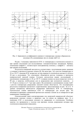 Ключевые фразы: ТРЕНИЕ, КОЭФФИЦИЕНТ ТРЕНИЯ, контактное электрическое сопротивление, температура, окисные пленки