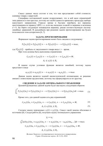 Рассмотрено совершенствование процесса приобретения товаров, которое ведет к снижению производственных расходов, а также к увеличению прибыли промышленного предприятия. В ходе анализа данных создан алгоритм, определяющий идеальное количество товара. Подчеркнуто, что этот алгоритм значительно улучшит качество поставок и производства, сократит затраты на складирование и износ продукции. Отмечено, что он базируется на принципе продолжения траекторий, который сводит задачу прогнозирования к соответствующей последовательности задач линейного программирования