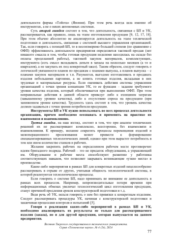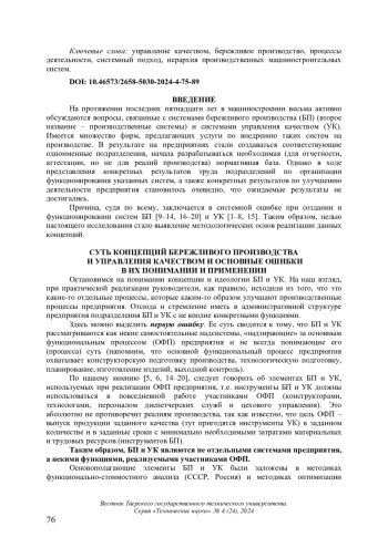 Статья: ПОВЫШЕНИЕ ЭФФЕКТИВНОСТИ ИНСТРУМЕНТОВ БЕРЕЖЛИВОГО ПРОИЗВОДСТВА И УПРАВЛЕНИЯ КАЧЕСТВОМ (2024)