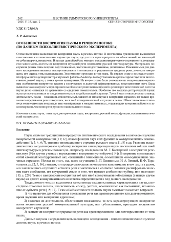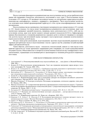 17. Тэн Хай, Андросова С. В. Особенности паузации в родной и акцентной спонтанной речи. Вестник НГУ. 2022. Т. 21 (2). С. 67-86. EDN: XTZIRJ