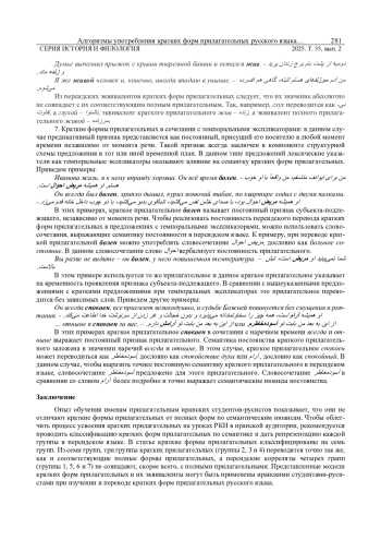 Краткие прилагательные выражают наряду с временным признаком прилагательного также и его постоянный и абсолютный признак. Краткие формы прилагательных воспринимаются иранскими студентами только как прилагательные временного значения и потому при переводе на родной язык употребляют эквиваленты прилагательных временного значения для всех типов кратких форм прилагательных. Также иранские студенты-русисты легко постигают значения полных форм прилагательных, однако, исходя из опыта преподавания, было выявлено что, при формулировании значений кратких форм прилагательных они испытывают определенные трудности передачи их на родной язык, заменяя эквивалентами полных форм прилагательных русского языка. Актуальность данного исследования заключается в том, что до настоящего времени краткие формы имен прилагательных не подвергались тщательному анализу исследователями русского языка в Иране, что и привело к малоизученности данного типа прилагательных и отсутствию адекватных способов их вербализации в персидском языке. В статье представлены всевозможные способы репрезентации в персидском языке постоянных и временных значений кратких форм прилагательных в русском языке. Авторы статьи концентрируют свое внимание на выявлении и формулировании семантических критериев употребления кратких форм прилагательных, пытаются найти некий общий алгоритм, имеющий объяснительную силу. Научная новизна данного исследования заключается в том, что в нем впервые даются модели значений и сферы употребления кратких форм прилагательных в переводном аспекте путем выявления адекватных способов передачи их на персидский язык.