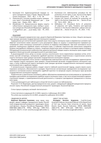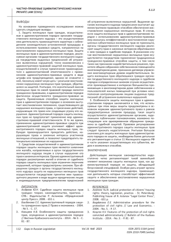 4. Кузнецова О.А. Административный порядок защиты гражданских прав // Право. Журнал Высшей школы экономики. - 2017. - № 1. - С. 42 - 58. EDN: VVUAWO