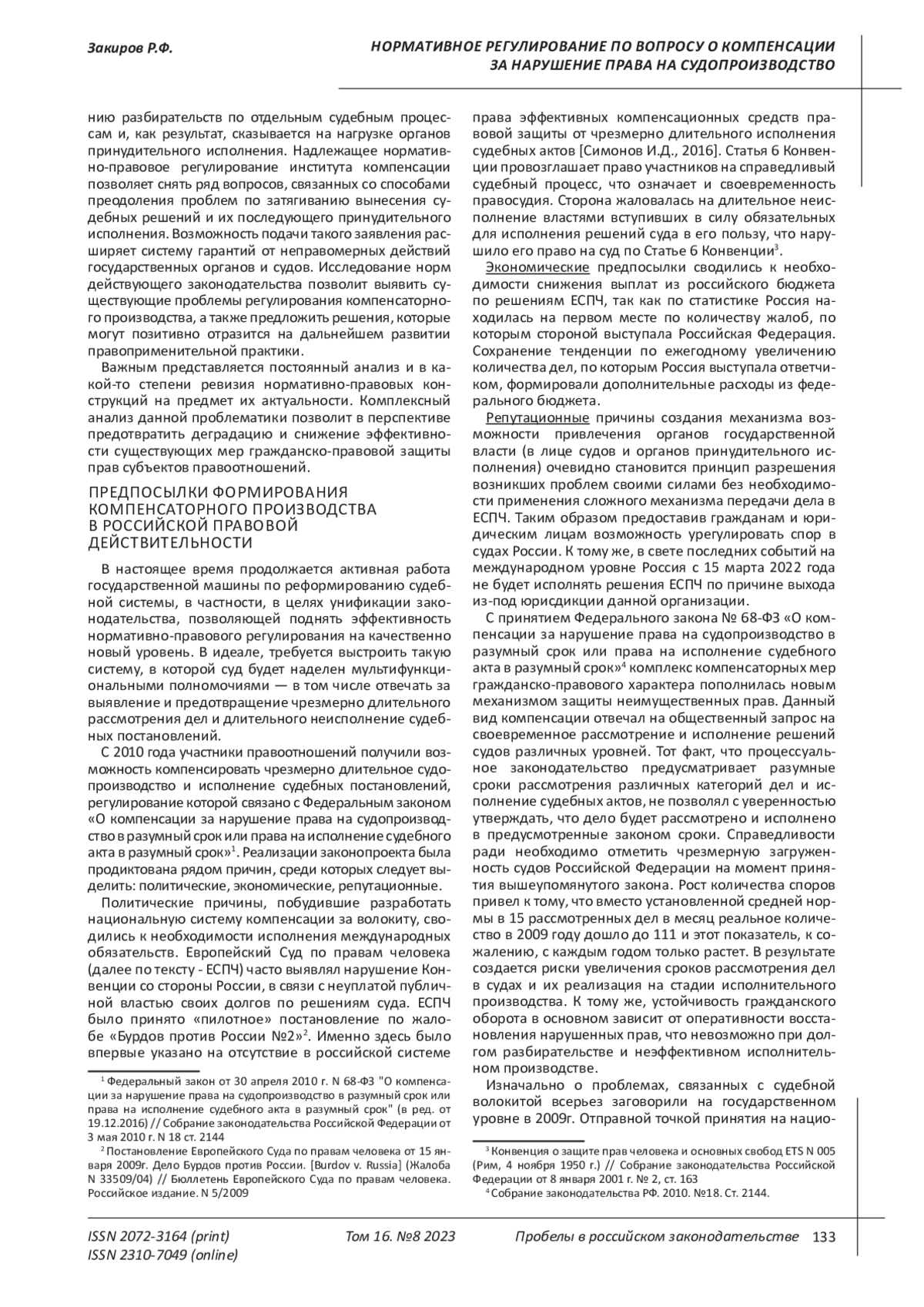 1. Симонов И.Д. Производство по делам о присуждении компенсации за нарушение права на судопроизводство в разумный срок или права на исполнение судебного акта в разумный срок: дис. … канд. юрид. наук. Саратов, 2015. 252 с. EDN: ZPRBHJ