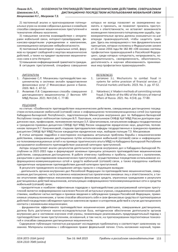 2. Яковлева Л.В. Современные способы совершения дистанционного мошенничества // Вестник КРУ МВД России. 2021. №4 (54). С. 77-80. EDN: YFDLEP