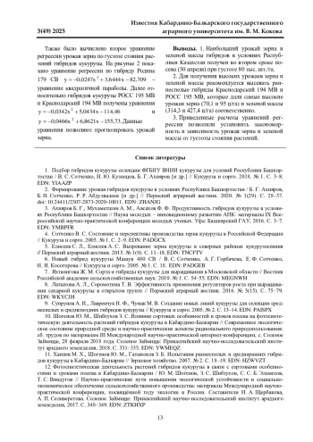 7. Яхтанигова Ж. М. Сорта и гибриды кукурузы для выращивания в Московской области // Вестник Российской академии сельскохозяйственных наук. 2010. № 1. С. 54-55. EDN: MEGNWH