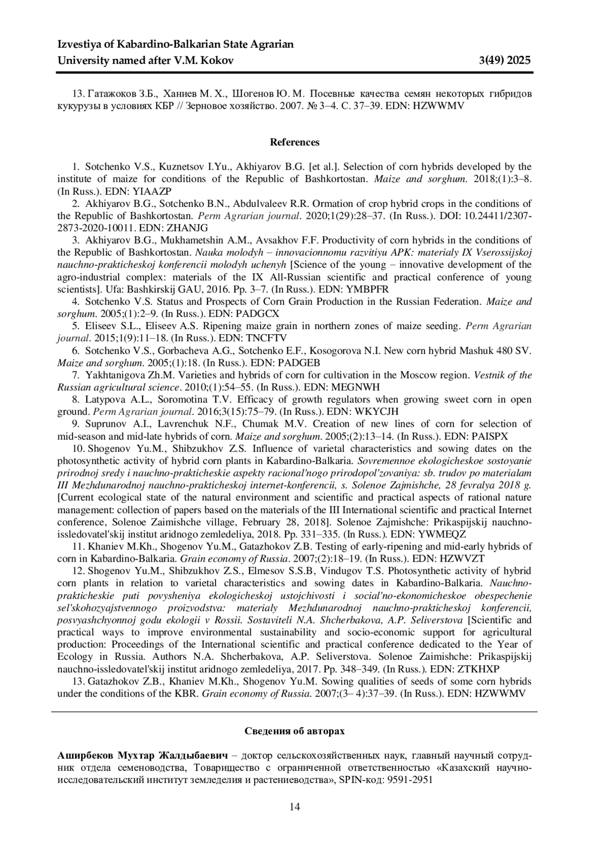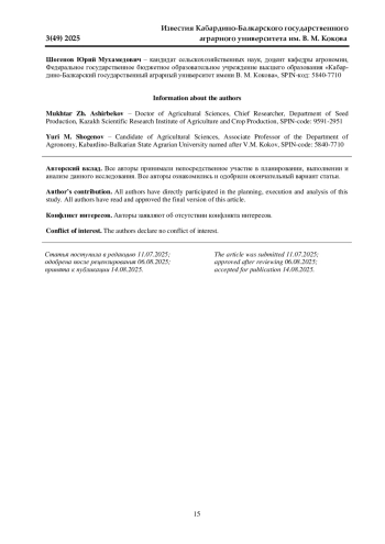13. Гатажоков З.Б., Ханиев М. Х., Шогенов Ю. М. Посевные качества семян некоторых гибридов кукурузы в условиях КБР // Зерновое хозяйство. 2007. № 3-4. С. 37-39. EDN: HZWWMV