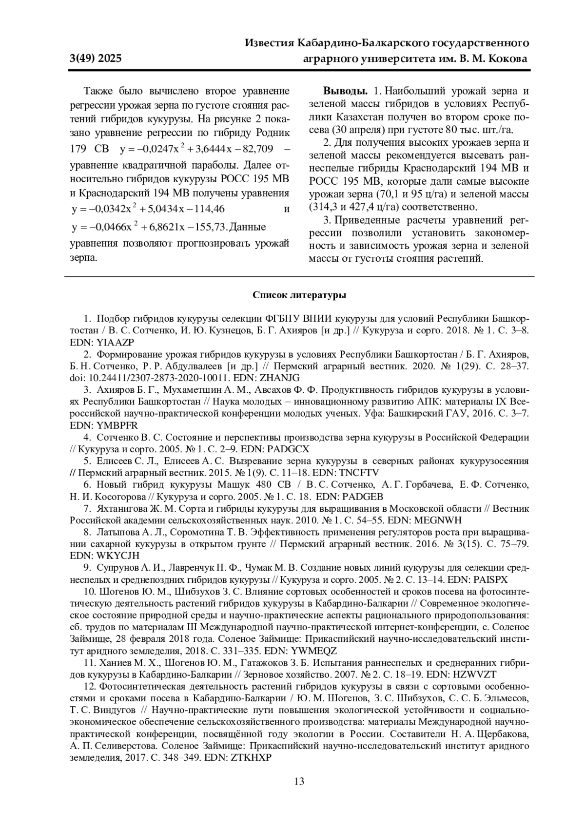 2. Формирование урожая гибридов кукурузы в условиях Республики Башкортостан / Б. Г. Ахияров, Б. Н. Сотченко, Р. Р. Абдулвалеев [и др.] // Пермский аграрный вестник. 2020. № 1(29). С. 28-37. DOI: 10.24411/2307-2873-2020-10011 EDN: ZHANJG
