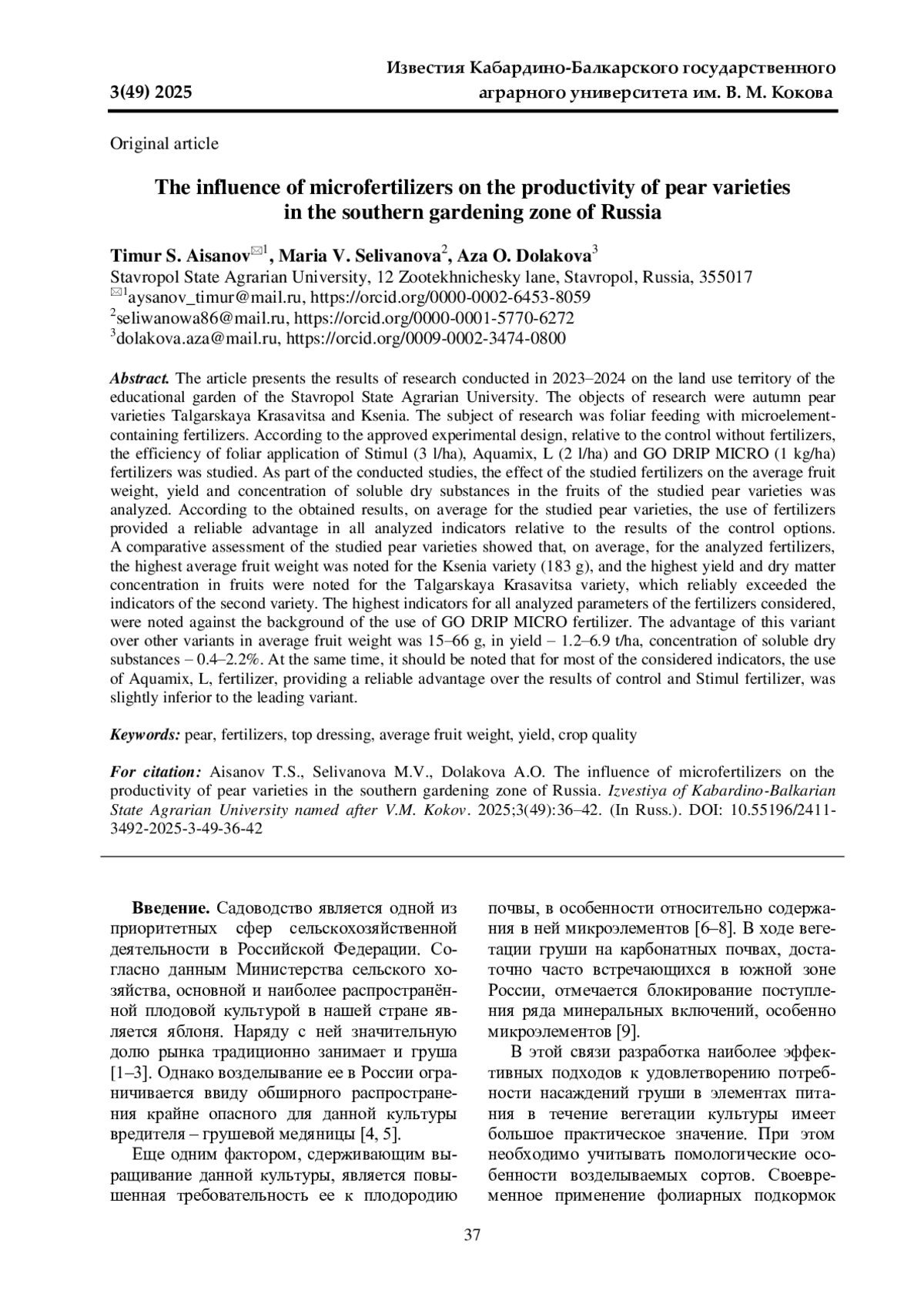 9. Бишенов Х. З., Нагудова Л. Х., Бетуганова М. А. Отзывчивость груши на особенности минерального питания в условиях предгорной зоны Кабардино-Балкарской Республики // Центральный научный вестник. 2020. Т. 5. № 4-6(93-95). С. 3-4. EDN: BNFOZX