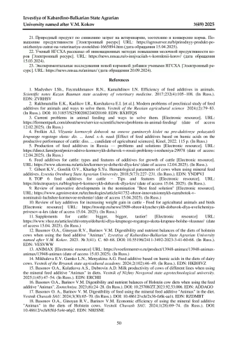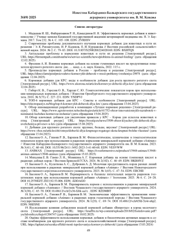 4. Фролкин А. И. Влияние кормовых добавок на основе гуминовых кислот на продуктивные показатели крупного рогатого скота: дис. … канд. с.-х. наук. Кинель, 2022. 115 с.