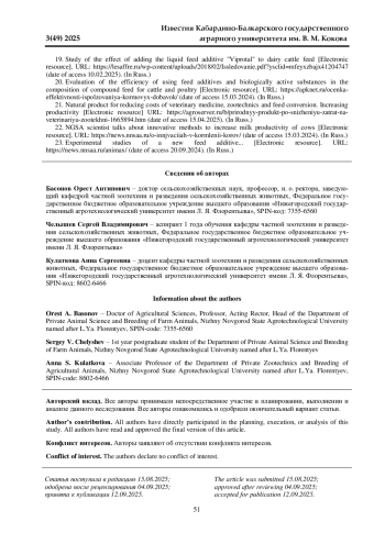 23. Экспериментальные исследования новой кормовой добавки учеными НГСХА [Электронный ресурс]. URL: https://news.nnsaa.ru/animax/ (дата обращения 20.09.2024).