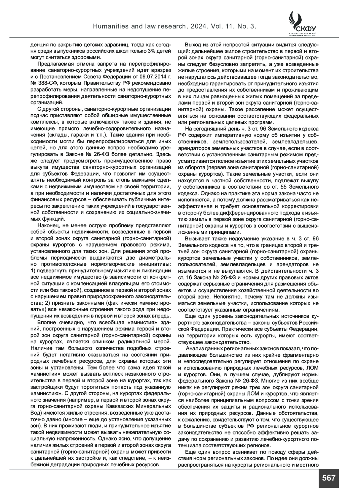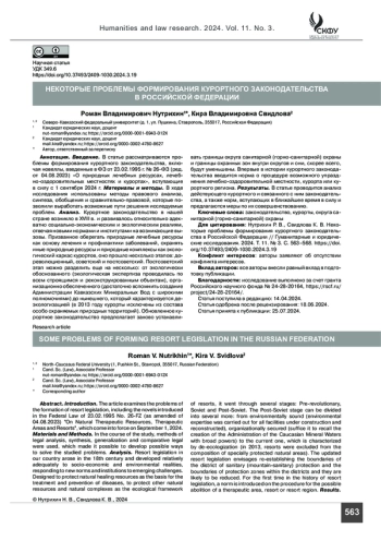 1. Навасардова Э. С., Чечель Г. И., Нутрихин Р. В. Проблемы правового режима земель лечебно-оздоровительных местностей и курортов // Гуманитарные и юридические исследования. 2019.№ 4. С. 186-196.