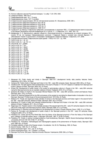 2. Вантеева Н. В. Общественное призрение на Ставрополье и Кубани в XIX - начале XX века: дисс. … канд. ист. наук. Ставрополь, 2000. 260 с.