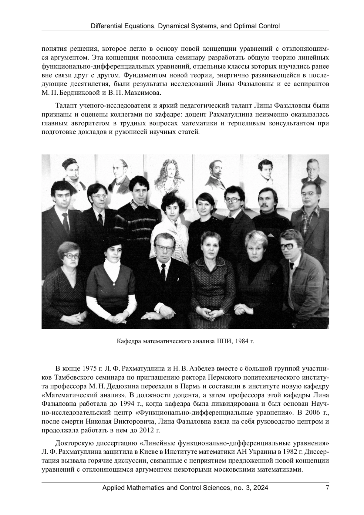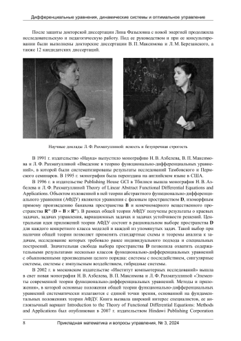 19 марта 2024 г. ушла из жизни Лина Фазыловна Рахматуллина, известный математик, основатель современной теории линейных функционально-дифференциальных уравнений, доктор физико-математических наук, профессор, заслуженный работник высшей школы Российской Федерации