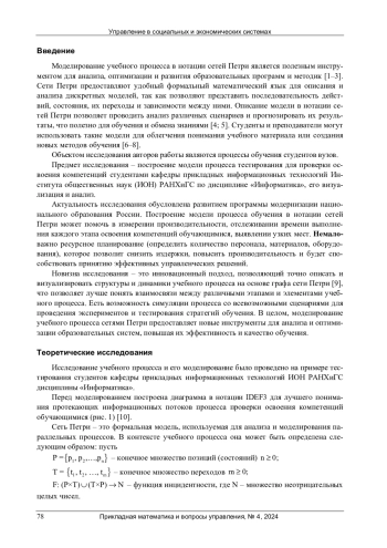 Статья: МОДЕЛИРОВАНИЕ УЧЕБНОГО ПРОЦЕССА В НОТАЦИИ СЕТЕЙ ПЕТРИ ДЛЯ ПРИНЯТИЯ ЭФФЕКТИВНЫХ УПРАВЛЕНЧЕСКИХ РЕШЕНИЙ (2024)