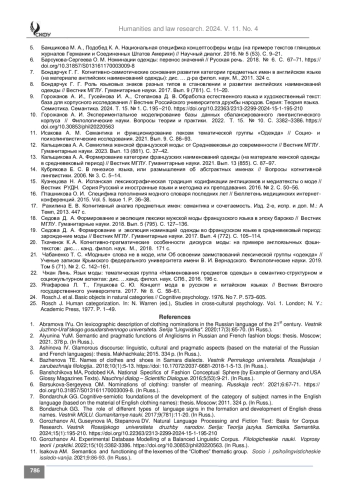 13. Кальщикова А. А. Формирование категории французских наименований одежды (на материале женской одежды в средневековый период) // Вестник МГЛУ. Гуманитарные науки. 2021. Вып. 13 (855). С. 87-97.