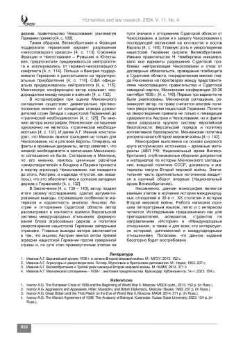 Для цитирования: Коробкина И. А., Вартумян А. А. Иванов А. Г. Мюнхенское соглашение – 1938 г.: анатомия предательства: монография / Министерство науки и высшего образования Российской Федерации, Кубанский государственный университет. Краснодар: Кубанский гос. Ун-т, 2023. 154 с. 500 экз. Гуманитарные и юридические исследования. 2024;11(4):808-810. https://doi. org/10.37493/2409-1030.2024.4.25