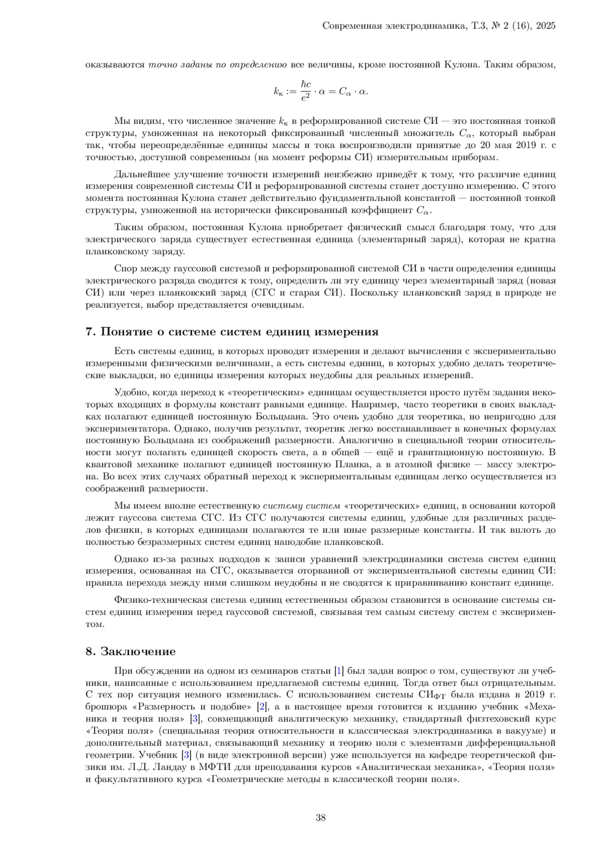 13. Капица С. П. Естественная система единиц в классической электродинамике и электронике. УФН 88 191-194 (1966). https://ufn.ru/ru/articles/1966/1/j/ [Kapitsa S. P. A natural system of units in classical electrodynamics and electronics. Sov. Phys. Usp. 9 184-186 (1966)].