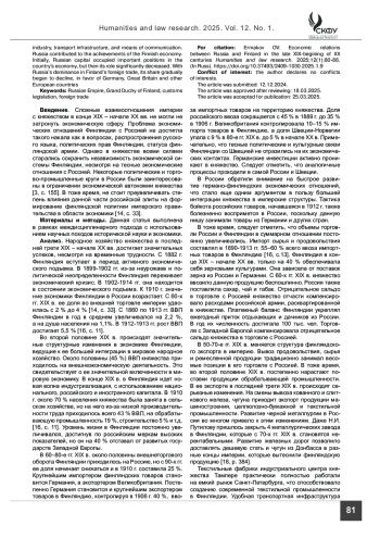 3. Bobovich IM. Russian-Finnish economic relations on the eve of the Great October Socialist Revolution. Leningrad.: Leningrad University Publishing House; 1968. 192 p. (In Russ.).