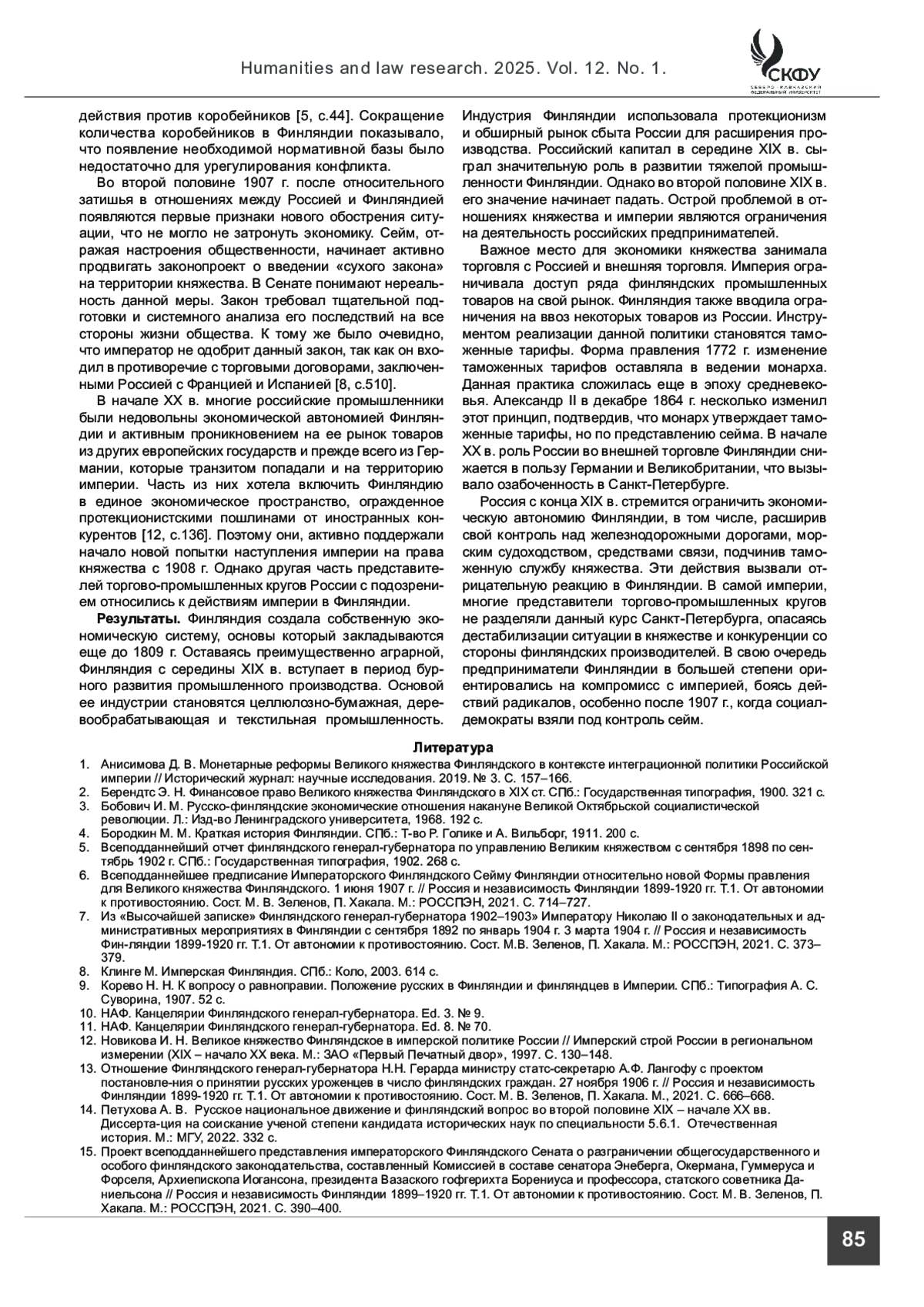 8. Klinge M. Imperial Finland. St. Petersburg: Kolo; 2003. 614 p. (In Russ.).