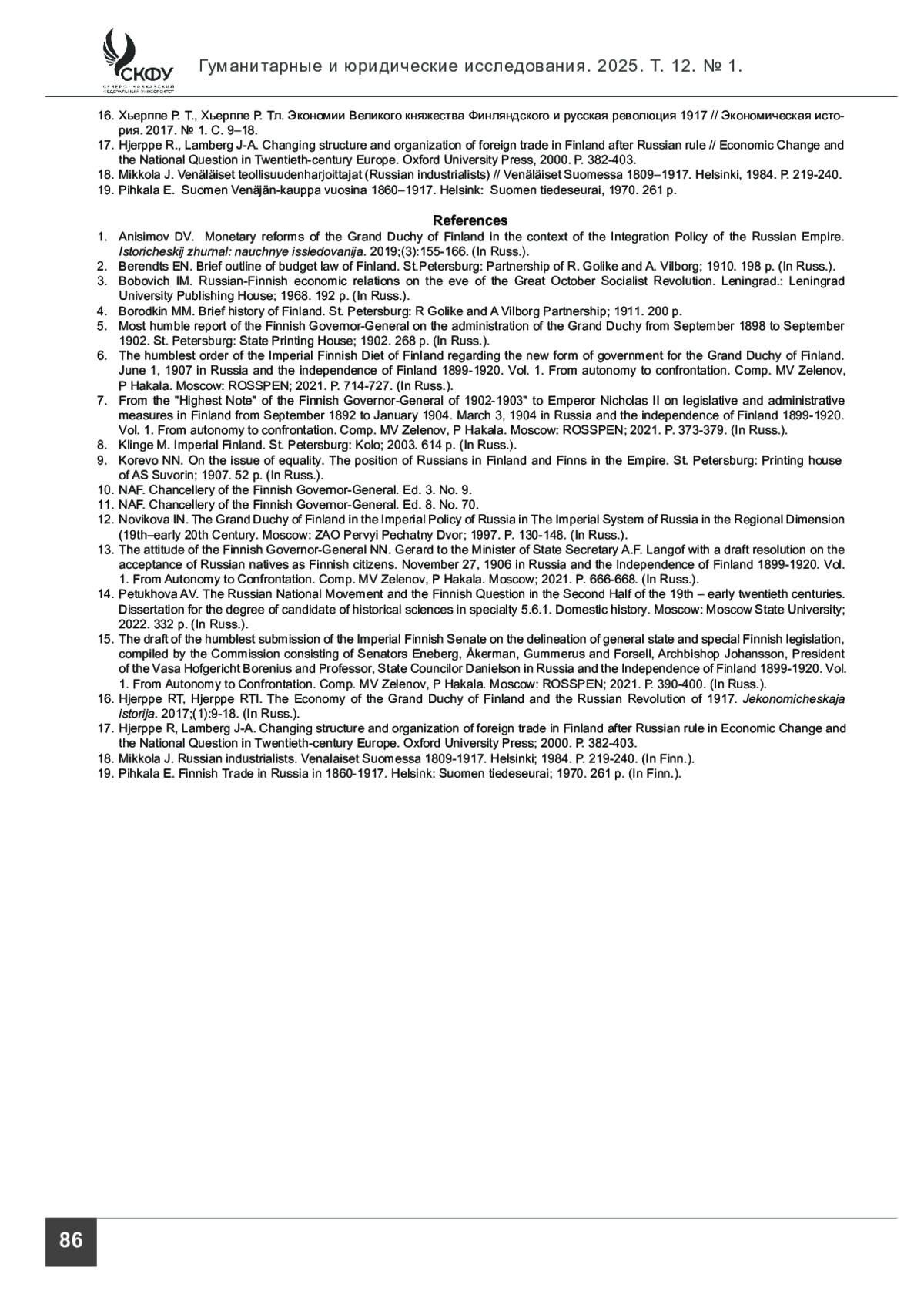 16. Hjerppe RT, Hjerppe RTl. The Economy of the Grand Duchy of Finland and the Russian Revolution of 1917. Jekonomicheskaja istorija. 2017;1:9-18. (In Russ.).