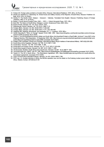 34. Barber J. South Africa’s Foreign Policy 1945-1970. L.: Oxford University Press. 1973. 325 р.