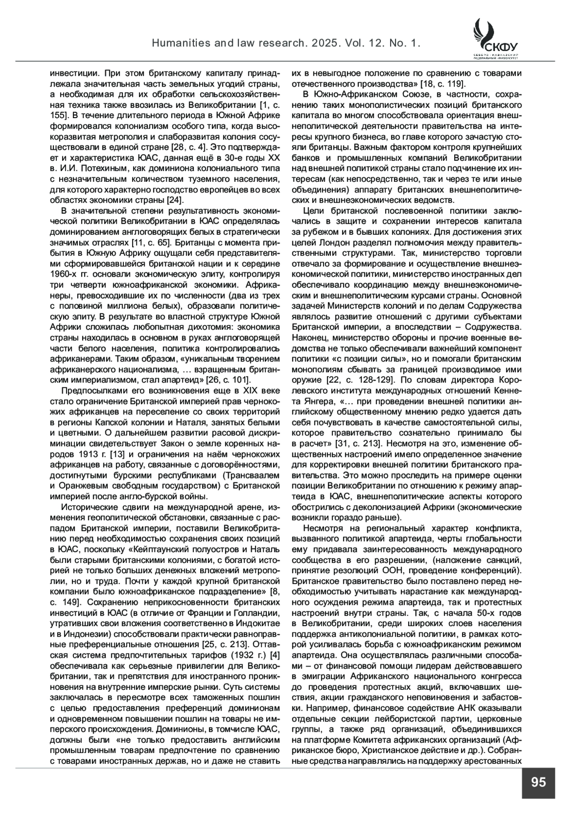 26. Сидоренко Л. В. Социально-экономические истоки режима апартеида в Южной Африке // Восток. Афро-азиатские общества: история и современность. 2023. Вып. 2. С. 93-103.
