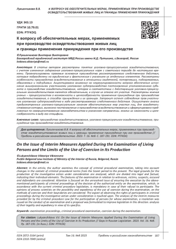 В статье автором рассмотрены понятие уголовно-процессуального освидетельствования, с учетом изменения содержания уголовно-процессуальных норм с советского периода до настоящего времени. Проанализированы правовые основания производства рассматриваемого следственного действия, которые подразделены на юридические и фактические с указанием их отдельных элементов. Рассмотрены особенности производства освидетельствования в отношении свидетелей, потерпевших, подозреваемых, обвиняемых и подсудимых. Акцентировано внимание на неурегулированности вопроса обеспечения исполнения вышеуказанными участниками уголовного судопроизводства постановления уполномоченного субъекта о производстве освидетельствования, которое в соответствии с действующим уголовно-процессуальным законодательством является обязательным, в случае их отказа от участия. Рассмотрены мнения ученых - процессуалистов о возможности и целесообразности применения принуждения при производстве освидетельствования, о способах принуждения и их границах. Затронут аспект соблюдения прав участников уголовного судопроизводства в ходе рассматриваемого следственного действия. Осуществлен анализ предусмотренных уголовно-процессуальным законом обеспечительных мер участия лиц, для освидетельствования которых, вынесено постановление о производстве освидетельствования и сформулировано предложение по совершенствованию законодательства в указанном направлении. анализ их законности и целесообразности в виду его специфики.