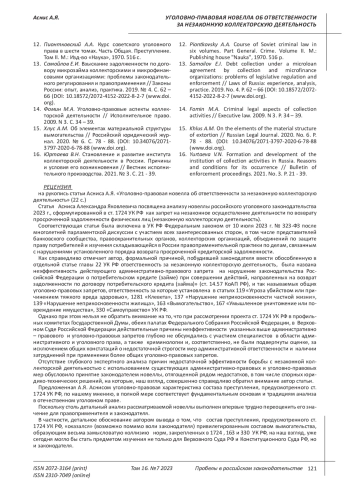 11. Осипова М.А. Коллекторская деятельность в Российской Федерации: анализ действующего законодательства // Мировой судья. 2022. № 8. С. 2 - 7. EDN: HMLPRA