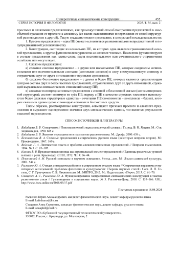 4. Вейхман Г. А. Лингвистика текста и проблема сложноподчиненных предложений // Вопросы языкознания. 1984. № 5. С. 95-107.
