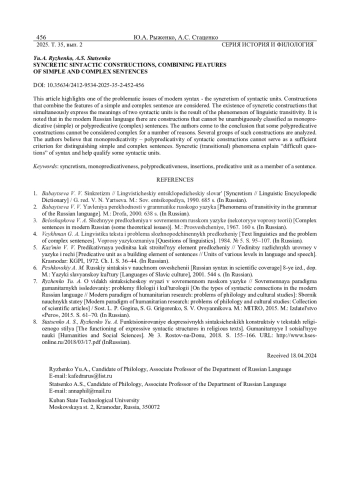 Явления синкретизма (переходности; совмещения «дифференциальных структурных и семантических признаков единиц языка») [1, с. 446] отмечены в русском синтаксисе более века назад. Тем не менее всестороннее, систематическое его изучение охватывает несколько последних десятилетий, и многие вопросы еще далеко не решены: наблюдается неустойчивость терминологии, нет единого мнения в понимании объема синкретичных явлений.