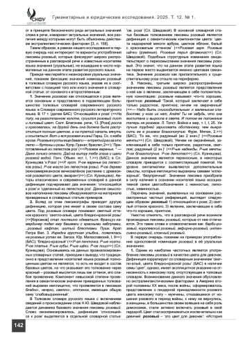 Введение. Проблематика семантизации системы цветообозначений в лингвистике рассматривается, во-первых, с точки зрения систематизации цвета как компонента культуры, отражающего этнокультурные ценности. Во-вторых, в рамках категориальной системы, где цвет является универсумом, поскольку характеризует свойства объектов материального мира, которые воспринимаются посредством зрительных ощущений и получают свое языковое выражение через цветообозначения. Актуальность статьи основана на отсутствии работ, посвященных различным проявлениям процесса семантизации номинации розовый в русском языке.
